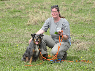 I've attached photos of Grace and I below. Grace tracked her heart out and then took the cross-track. To me she seemed to get off to the best start of the 3 TDX dogs. I am very proud of her for working the entire length of the track and locating all 3 articles on the track. After getting whistled for the cross-track we got back on so she could finish. She had a great time tracking and was very happy when she found the glove at the end of the very long track! I was also proud of me because the photos I was able to view showed better tracking handling than the last set I saw - I don't think I crowded her today.